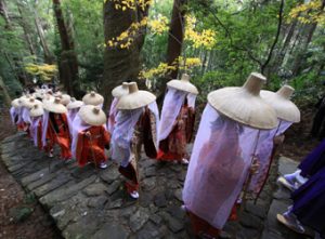 By the Heian era (794-1185), pilgrimages to Kumano seeking worldly benefits surged in popularity. Inclusive and open to all, regardless of social status or gender, these pilgrimages attracted a vast array of people, from emperors to commoners and even the physically challenged. The sight of countless pilgrims following narrow mountain paths came to be known as “ants’ Kumano Pilgrimage.” In recognition of its cultural significance, the pilgrimage route, Kumano Kodo, was regsitered as a UNESCO World Heritage site in 2004 under the title “Sacred Sites and Pilgrimage Routes in the Kii Mountain Range.”