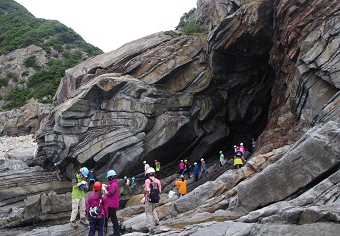 On the ocean floor, oceanic plates were subducting under continental plates. Sediments accumulated on the ocean floor were scraped off and pushed towards the land as the oceanic plates subducted. Eventually, these accumulated sediments attached (accreted) to the land and integrated with it, forming the base of the Nanki-Kumano land known as the “accretionary complex.”