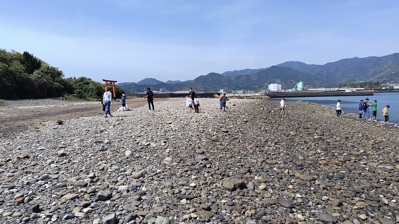南紀熊野ジオパーク推進事業者のGo-Kuma-Kids様の呼びかけで、地域の子供たちや関係事業者が集まった今回の企画は、ごみ拾いをした後、海岸に落ちているシーグラス(ビーチグラス)を集めるというものでした。