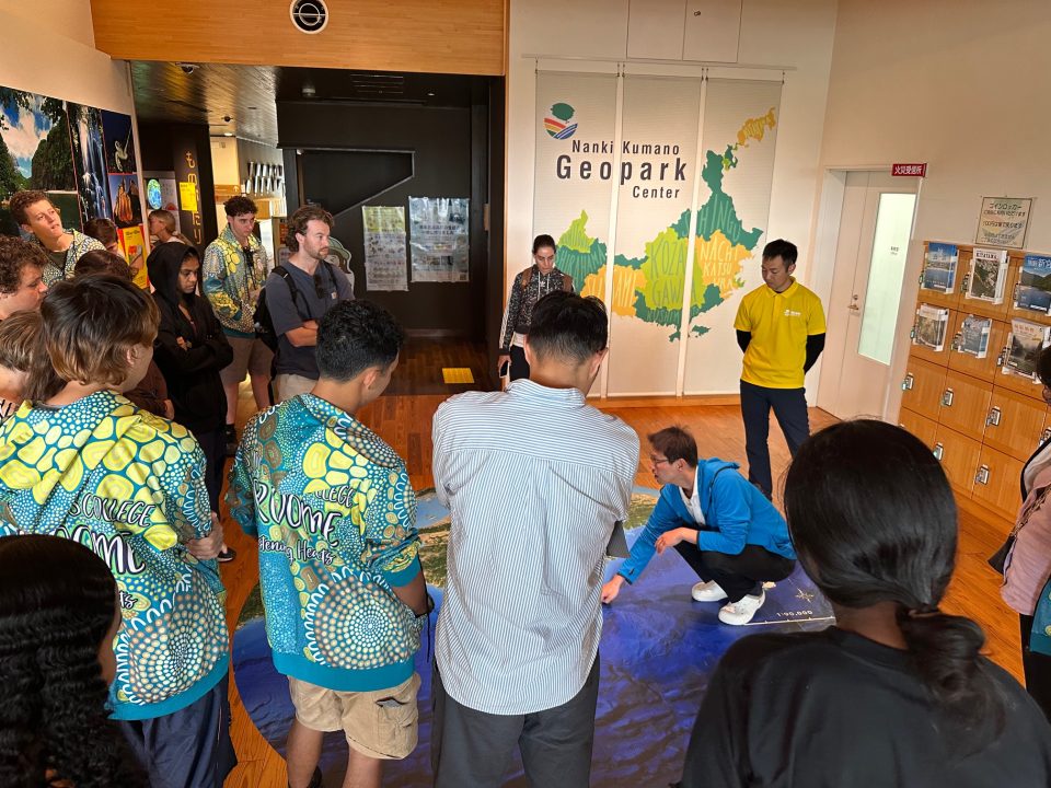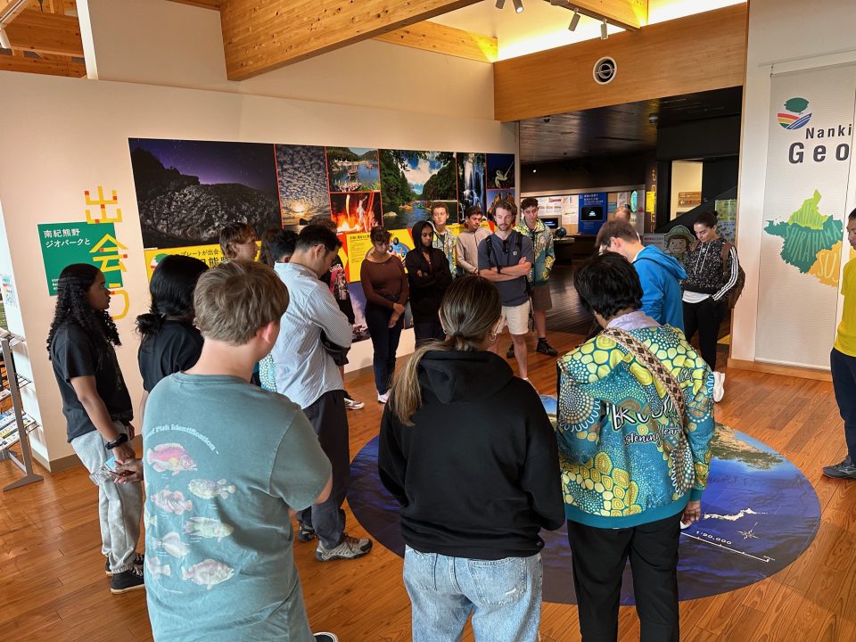 南紀熊野ジオパークエリア内にある太地町と姉妹都市を結んでいるオーストラリアのブルームの皆さんが、5月1日(木)にジオパークセンターを訪れてくれました。センター内を自由に見学した後、専門員が南紀熊野ジオパークについての説明を行いました。