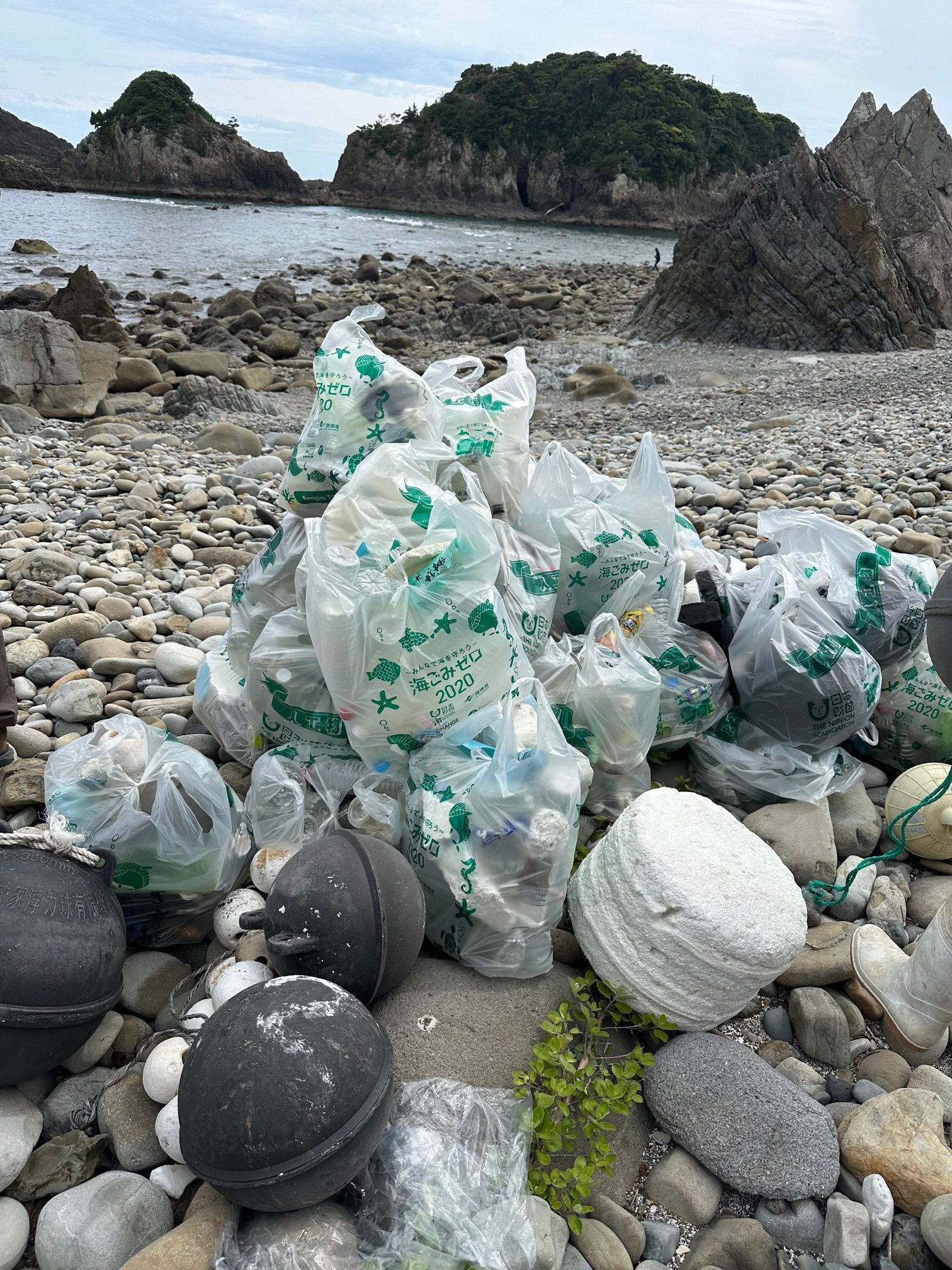 5月28日(水)に南紀熊野ジオパークのガイドの方々と一緒に、ジオサイトである黒島周辺の海岸清掃を行いました。約1時間30分程度清掃活動を行い、ごみ袋45袋分の海ごみを回収しました。今後もジオサイトの保全活動を継続的に行っていきたいと思います。