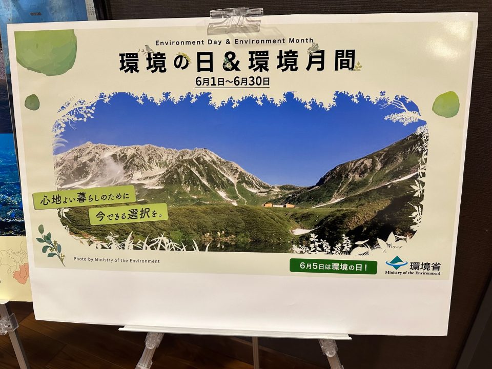 ジオパークセンターを訪れるお客様に環境について考えるきっかけにしてもらうため、「環境の日&環境月間」のパネルを設置しました。6月5日(木)は、国連総会が制定した「世界環境デ―」です。環境保全の重要性を再認識し、環境への意識を高めるための日で、日本では「環境の日」と呼ばれており、6月の1ヶ月間を「環境月間」として、全国でさまざまなイベントが開催されています。