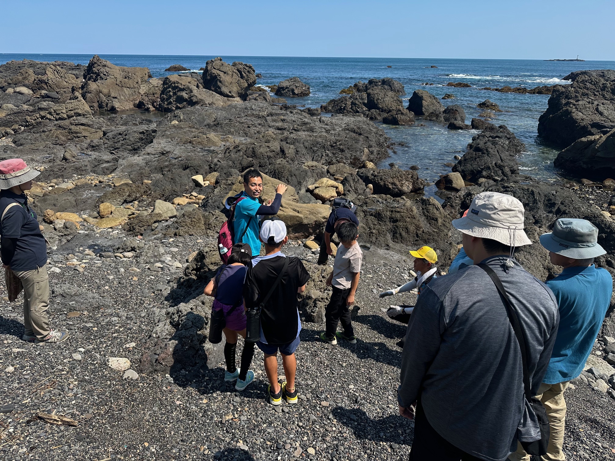 ホーム 日々の活動 宇久井ビジターセンターのイベントに講師として参加しました 2025.06.02 宇久井ビジターセンターのイベントに講師として参加しました 6月1日(日)に、南紀熊野ジオパークの見どころである宇久井半島の地玉の浜にてオーソコーツァイトを探すイベントを開催され、講師として専門員が参加しました。オーソコーツァィトは石英の砂粒が集まったもので、砂漠の発達するような大陸で形成されるとされています。なぜ今、宇久井半島で見ることができるのかなどを解説しながら、参加者の皆さんと一緒に探しました。