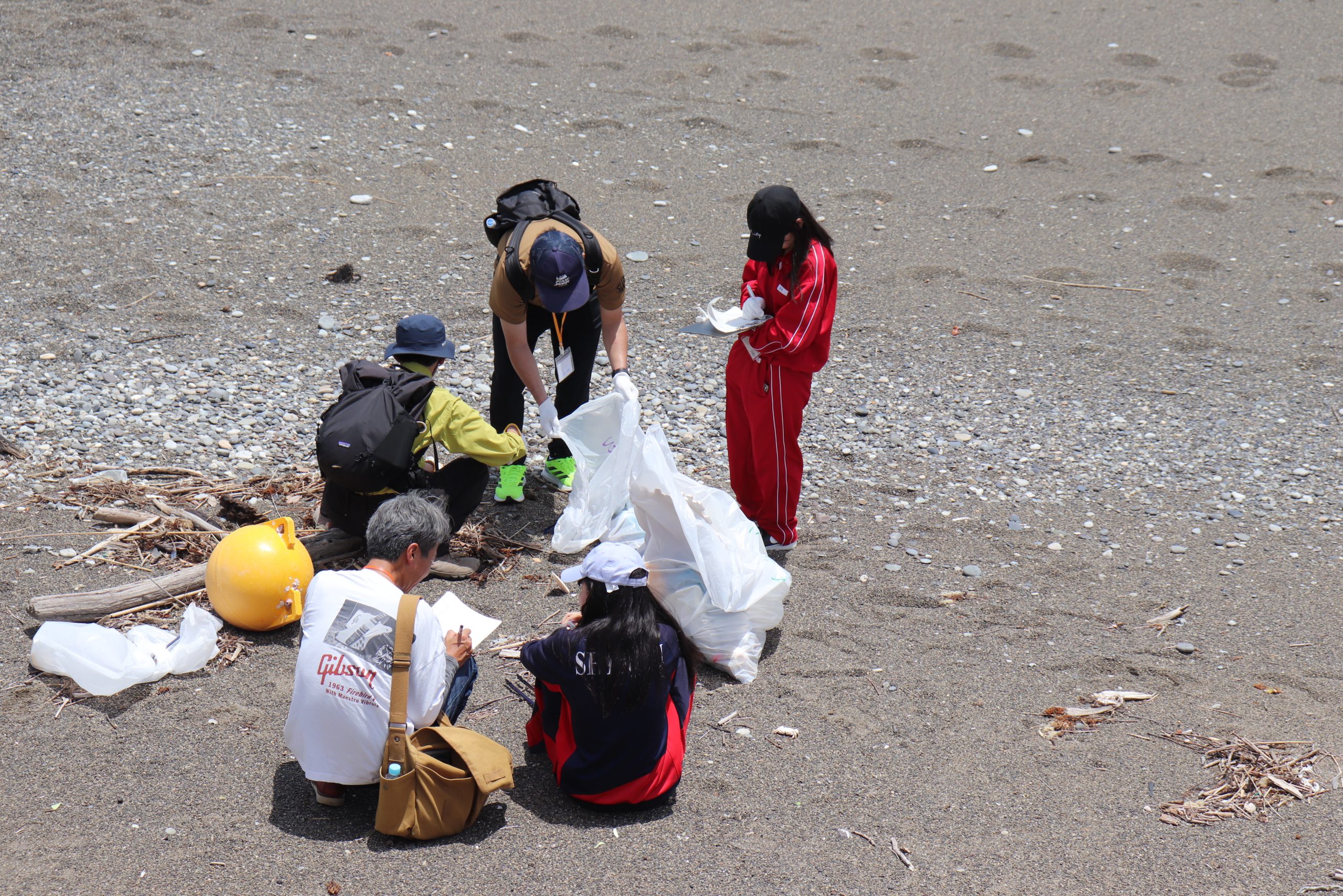 ホーム 日々の活動 南紀熊野ジオパーク探偵団の現地調査活動を行いました 2025.06.16 南紀熊野ジオパーク探偵団の現地調査活動を行いました 6月14日(土)白浜町の志原海岸、15日(日)新宮市の三輪崎海岸にて、南紀熊野ジオパーク探偵団「海洋環境を考える」の現地調査活動を行いました。参加した中・高校生たちはグループに分かれ、担当するエリアにどのような海ごみが落ちているのかを調査用紙に記入しながら、拾い集めました。1時間程度集めた後、ごみを分別し、種類ごとに計測を行いました。今後、各グループの海ごみのデータを集約し、事後学習にて感じたことや疑問に思ったことなどを意見交換する予定になっています。