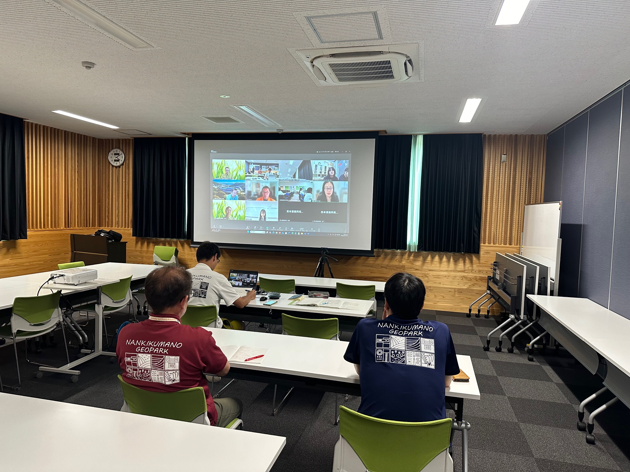 7月9日(水)に、令和7年度南紀熊野ジオパーク探偵団「海洋環境を考える」の事後学習①を行いました。6月に白浜町志原海岸、新宮市三輪崎海岸で行われた現地調査活動の集計データをもとに、参加者がオンラインにて、それぞれ気づいたことや疑問に思ったことを専門家の先生方と一緒に話し合いました。