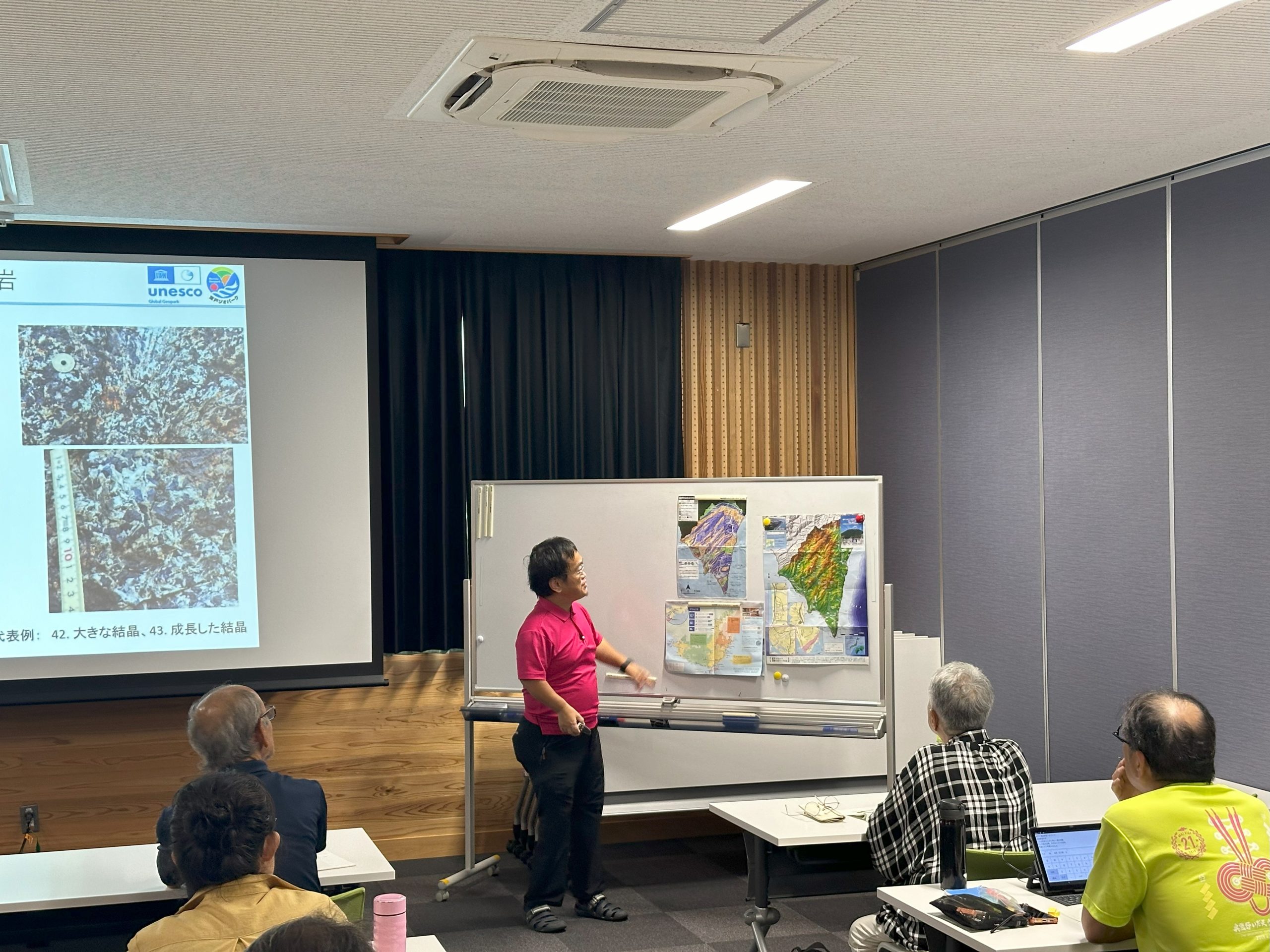 7月18日(金)に、令和7年度南紀熊野ジオパークガイドスキルアップ講座を実施しました。スキルアップ講座は、ガイドさんたちがガイドスキルを向上するための機会として、毎年、実施しているものです。今年度は、室戸ユネスコ世界ジオパークから柿崎専門員をお呼びし、「室戸と南紀熊野 それぞれの特色 ージオの観点からー」と題して、講義をしていただきました。