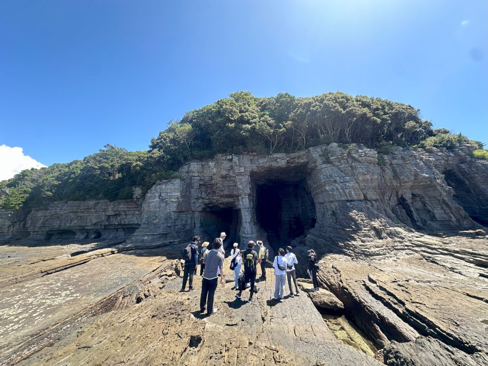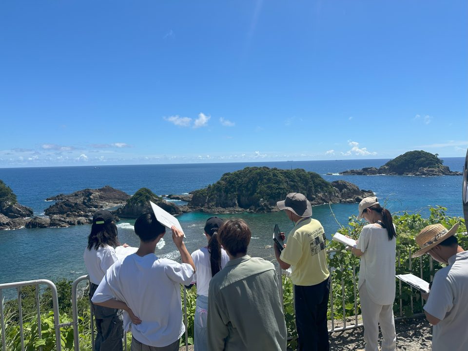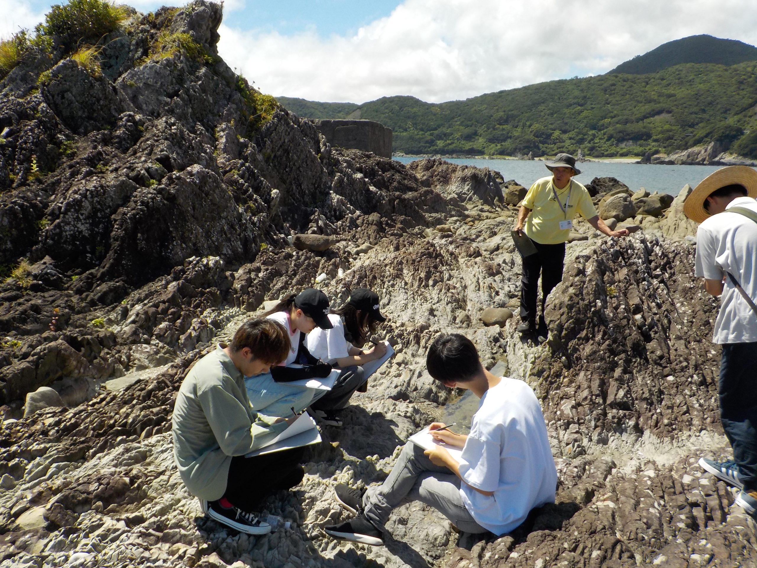 7月24日(木)に、南紀高校の授業の一環として、白浜町やすさみ町にてジオパークガイドがフィールドワークを行いました。参加した生徒の皆さんは熱心に話を聞きながら、地層の観察などを行いました。