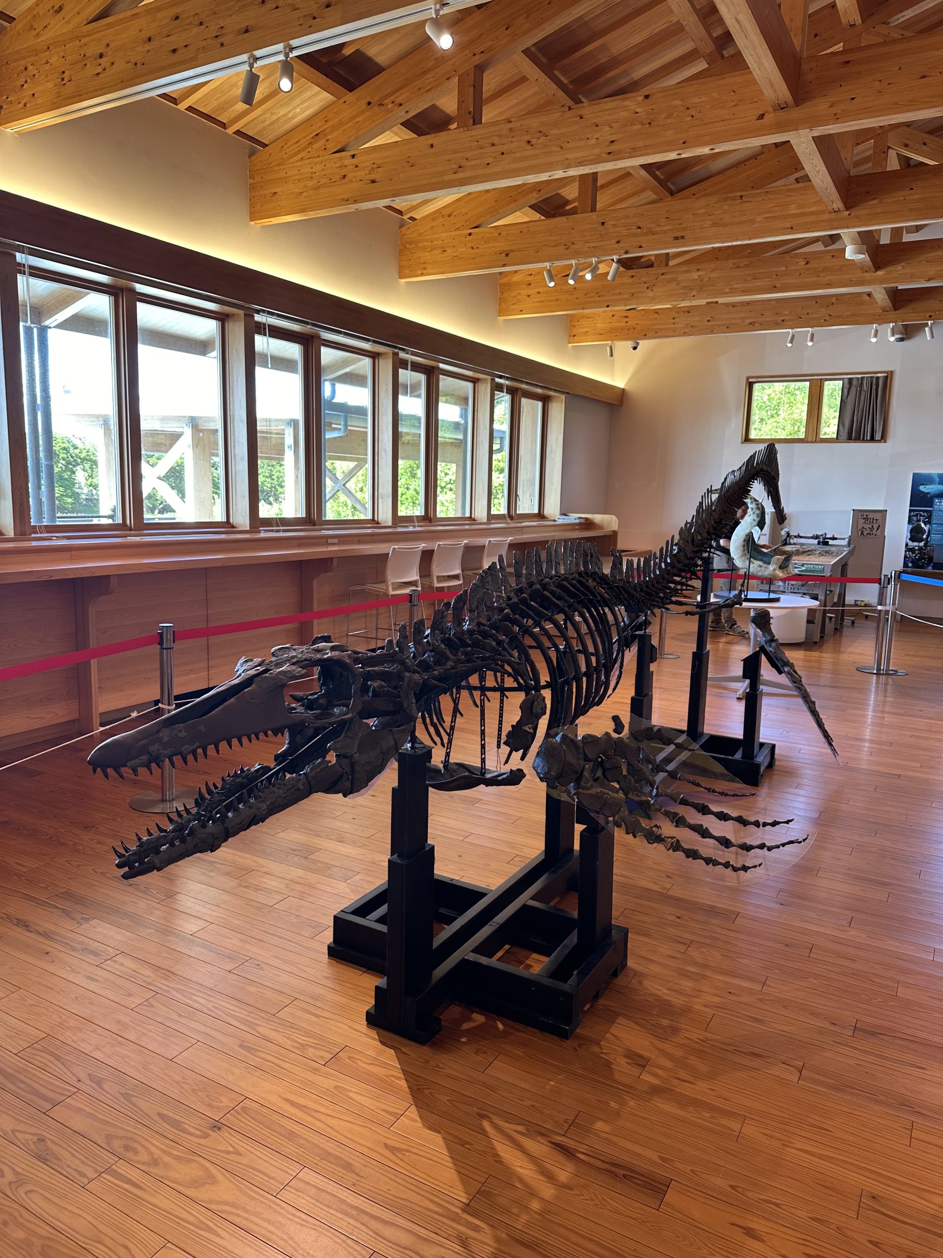ホーム 日々の活動 巡回展 復活!!ワカヤマソウリュウの展示が始まりました 2025.07.25 巡回展 復活!!ワカヤマソウリュウの展示が始まりました 本日、7月25日(金)~9月15日(月)まで開催の「巡回展 復活!!ワカヤマソウリュウ」の展示が始まりました。 この展示は、平成18年に有田川町で発見され、令和5年に新種となったモササウルス類、メガプテリギウス・ワカヤマエンシス(通称「ワカヤマソウリュウ」)の実物大の全身復元骨格と生体復元模型を、和歌山県立自然博物館が作成したものです。 ぜひお近くに来られた際は、南紀熊野ジオパークセンターにお立ち寄りください。
