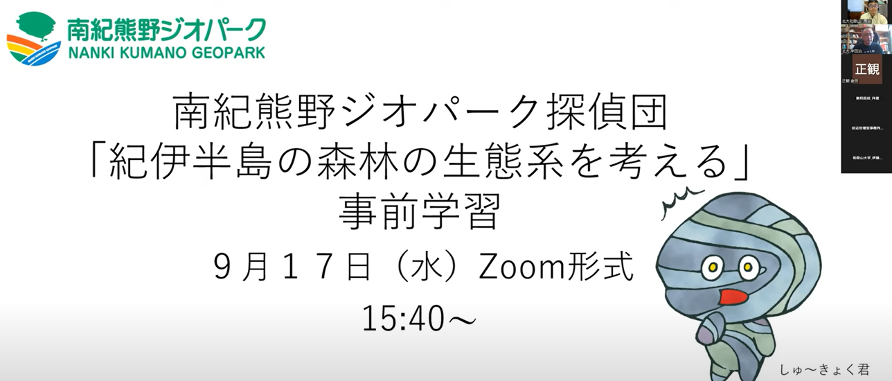 9月17日(水)に、令和7年度南紀熊野ジオパーク探偵団「紀伊半島の森林の生態系を考える」の事前学習を行いました。今年度の現地調査活動には和歌山県下から13名の高校生が参加し、9月21日(日)古座川町平井にある北海道大学和歌山研究林で行う予定です。