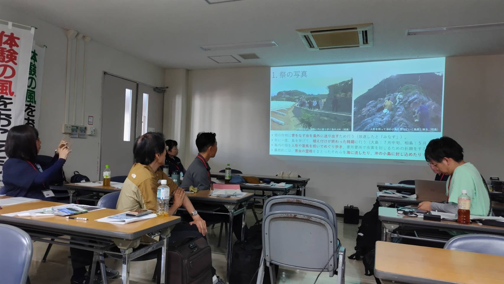 ホーム 日々の活動 2025年JGN中四国近畿ブロック研修会に参加しました 2025.10.20 2025年JGN中四国近畿ブロック研修会に参加しました 10月9日(木)~10日(金)に、日本ジオパークネットワークの中四国近畿ブロックの研修会が、高知県の室戸ユネスコ世界ジオパークで行われ、南紀熊野ジオパークセンターからも参加しました。 今回は、「祭」をテーマに、地域の特色ある祭りの紹介、地域風土の関わり、環境変化、ジオパークとの関わりについて発表やグループ討議等を実施しました。南紀熊野ジオパークからは、古座川の河内祭りについて、紹介しました。