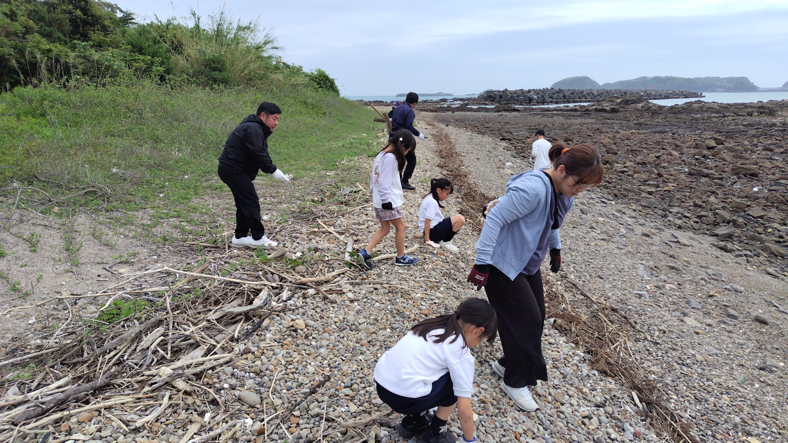 地域の児童と保護者、そして、中学生・高校生、スタッフ等を合わせた約30名が一丸となって、地元で大切にされてきた鈴島、孔島の海岸をきれいに清掃しました。