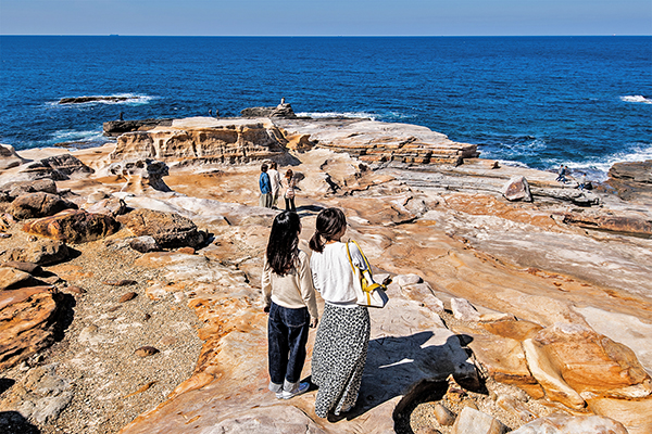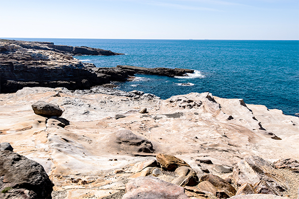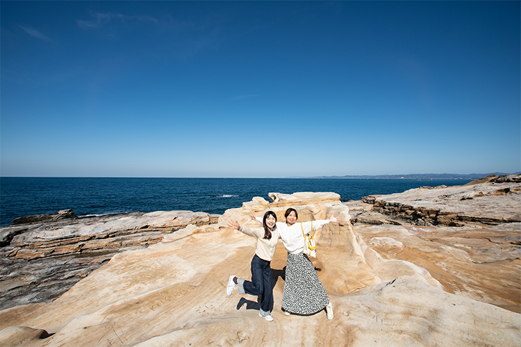 千畳敷は、その名前の通り広大な岩畳を敷き詰めたような地層。大きさは約4haにも渡ります。重なり合う地層をよく見てみると、砂などの粒子がどのように積み重なっていったかを示すその地層特有の“堆積構造”や、生物の活動の足跡が分かる“生痕化石”などを発見することができます。夕方には水平線と千畳敷が赤く染まる、絶好の撮影スポットでもあります。