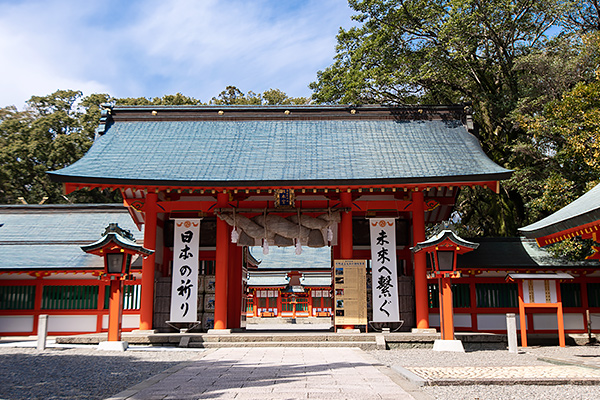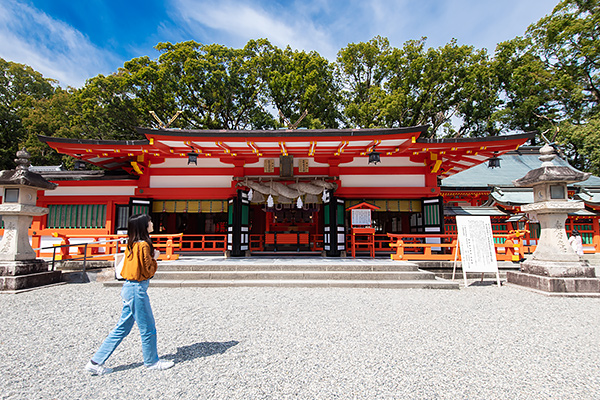 鮮やかな朱塗りの社殿が荘厳な雰囲気を漂わせる、「熊野速玉大社」。熊野本宮大社、熊野那智大社とともに熊野三山の1つとして知られています。自然信仰を源流にした熊野信仰の中心の地。主祭神は、熊野速玉大神(くまのはやたまのおおかみ)と、熊野夫須美大神(くまのふすみのおおかみ)という夫婦神です。