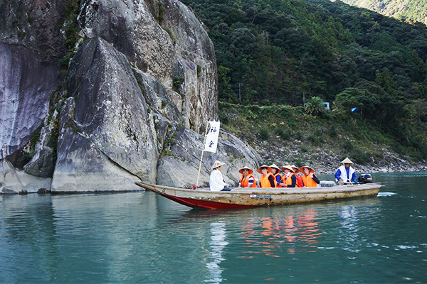 かつて皇族たちが熊野本宮大社と熊野速玉大社を巡拝するときに利用したとされる、熊野川の川舟下り。世界遺産“川の参詣道”の旅を体験。熊野川は、奈良県、和歌山県、三重県を流れる長さ約183kmの一級河川。独特の地質を持つ奇岩の数々と、深みのあるブルーの水面が特徴です。