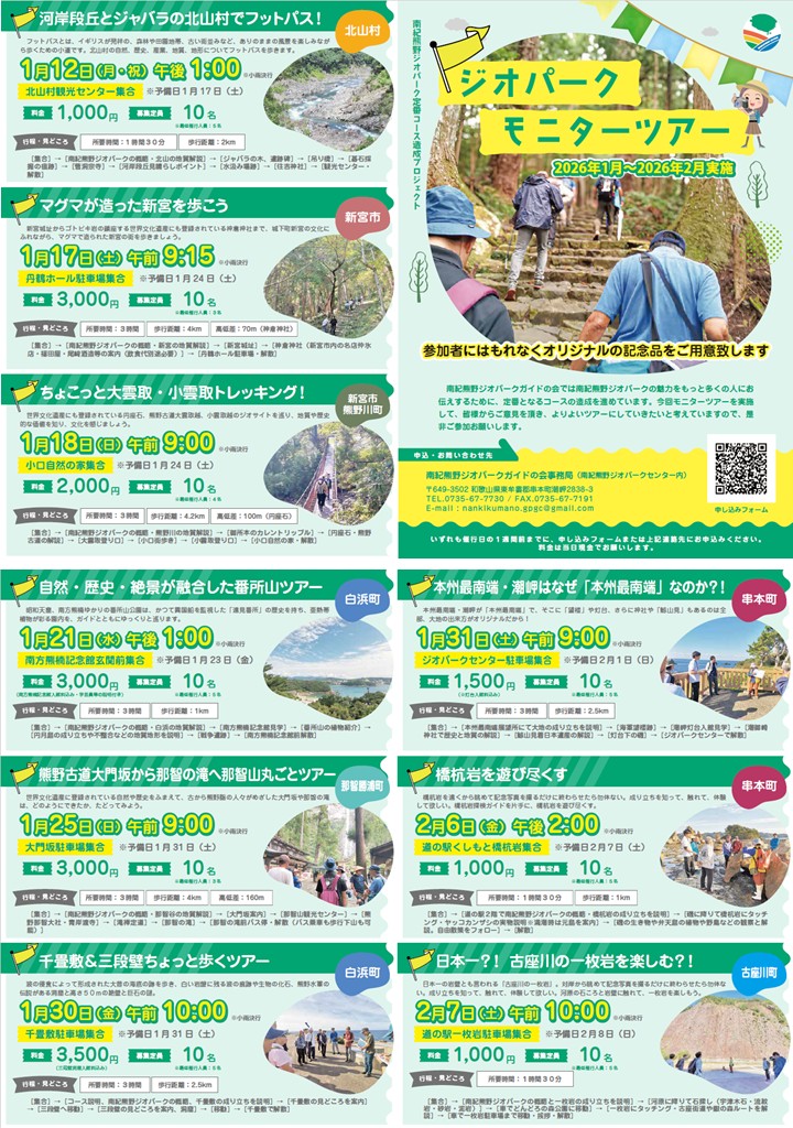 南紀熊野ジオパークのモニターツアーについて(2026年1月~2月)