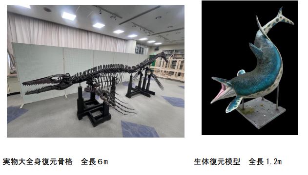 ホーム イベント情報 巡回展 「復活!!ワカヤマソウリュウ」を開催します 2025.07.17 展示 巡回展 「復活!!ワカヤマソウリュウ」を開催します 平成18年に有田川町で発見され、令和5年に新種となったモササウルス類、メガプテリギウス・ワカヤマエンシス(通称「ワカヤマソウリュウ」)の実物大の全身復元骨格と生体復元模型が、県立自然博物館で作成されました。このたび、これらを展示する巡回展を南紀熊野ジオパークセンターで開催します。 ◆ 展示期間:令和7年7月25日(金)~9月15日(月・祝) ◆ 会 場:南紀熊野ジオパークセンター(東牟婁郡串本町潮岬 2838-3) ◆ 開館時間:9時~17時(入館無料)、期間中無休