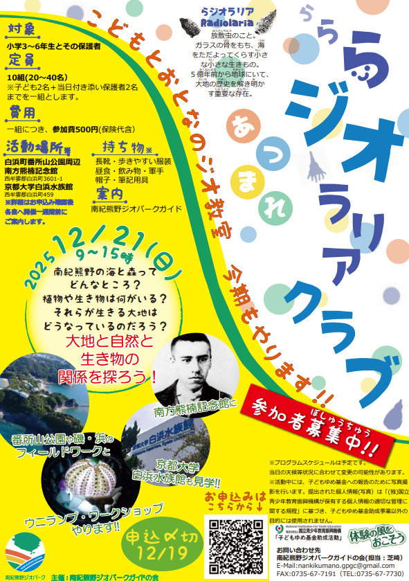 (1)参加対象:南紀熊野ジオパークエリア内の小学3~6年生とその保護者