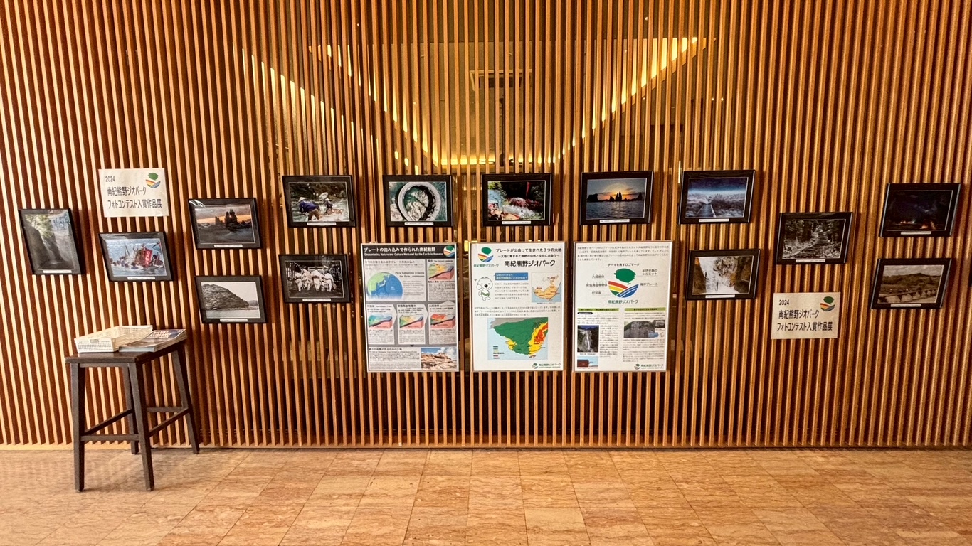 2024南紀熊野ジオパークフォトコンテスト入賞作品を、白浜町の「SHIRAHAMA KEY TERRACE HOTEL SEAMORE」で展示しています。