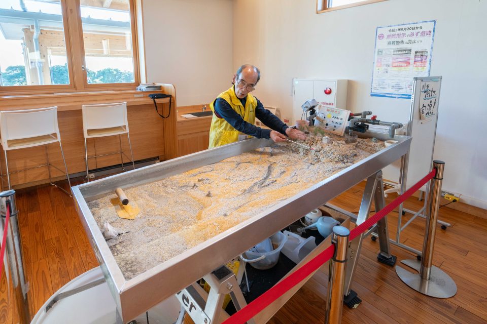 使用沙子和水來示範「河流是如何形成的」。您可以了解洪水發生的機理,提高防災意識。