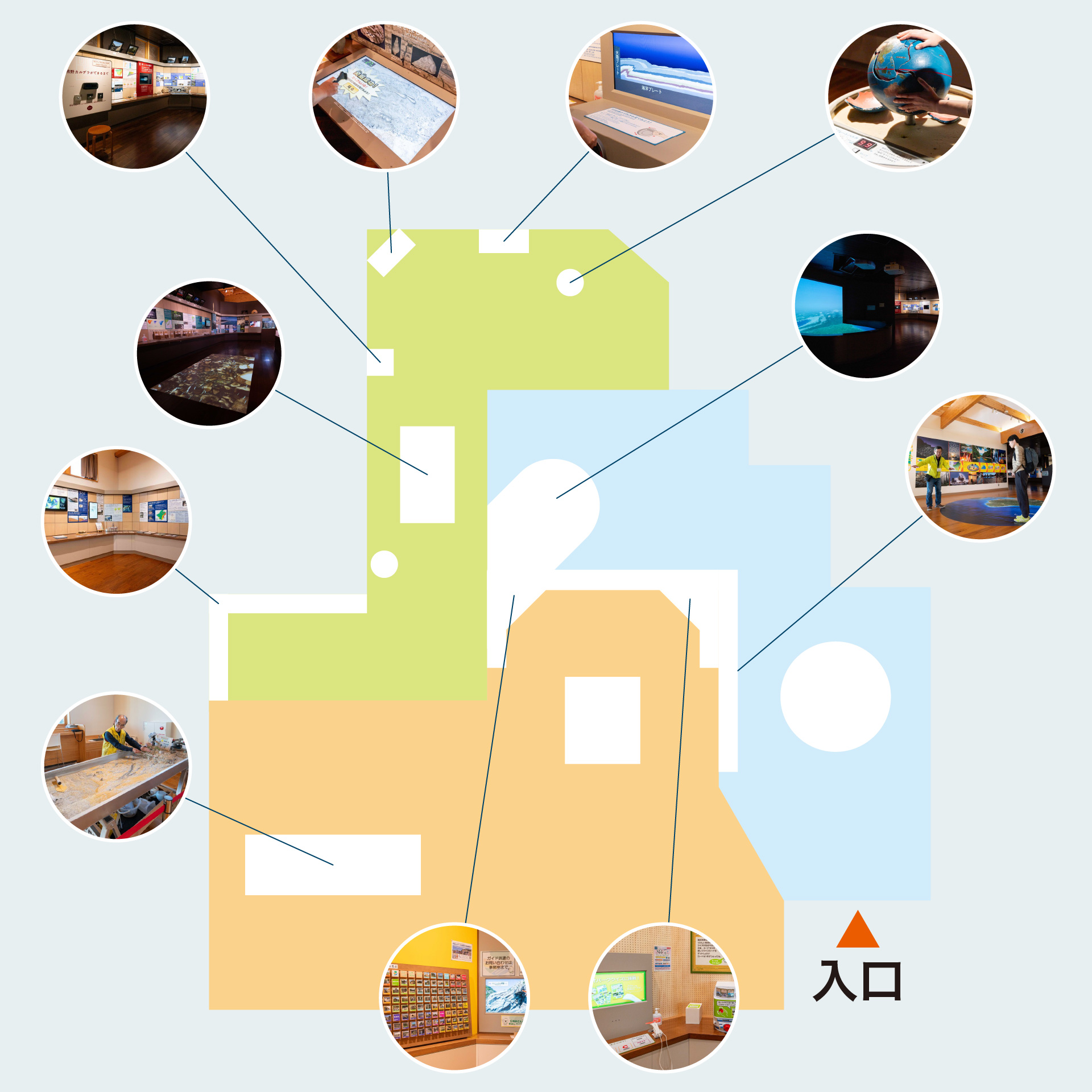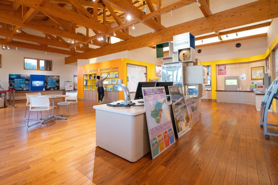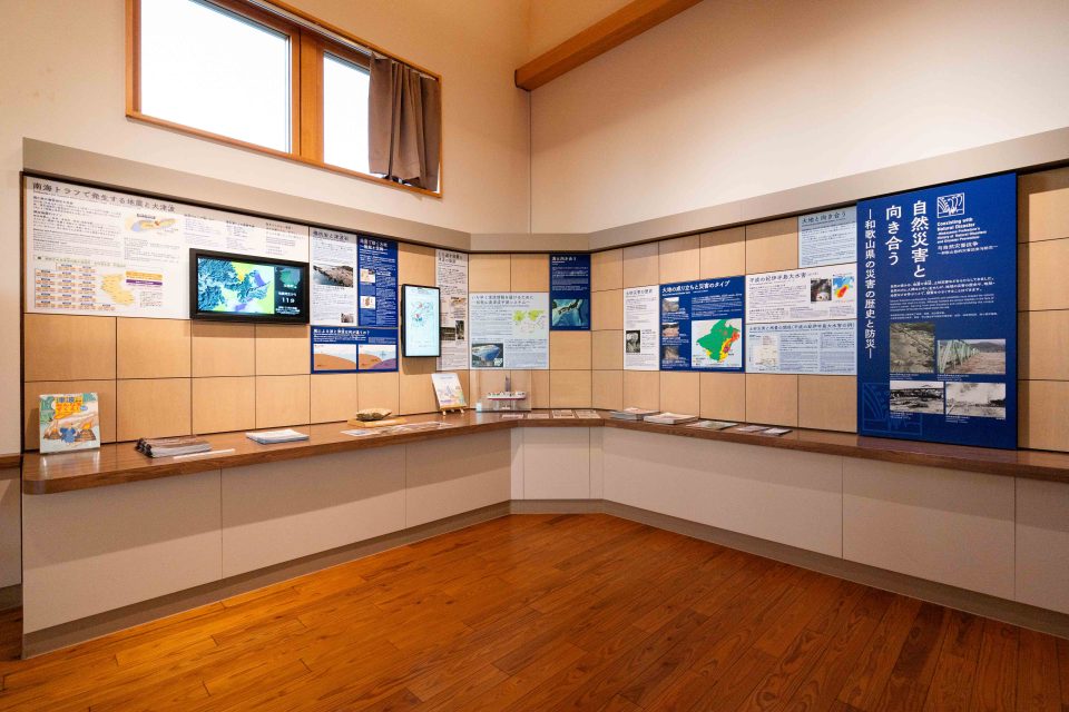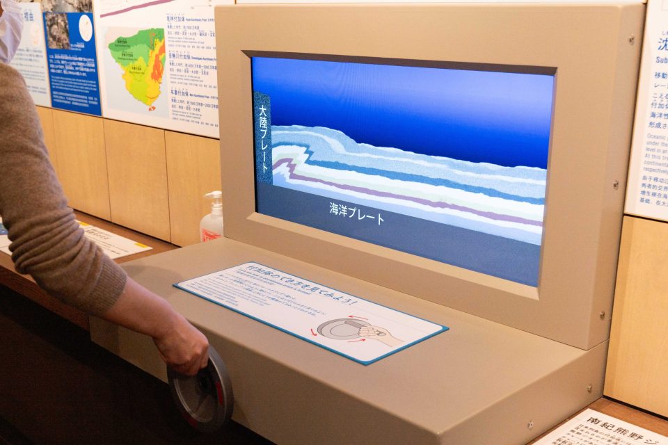紀伊半島是新大陸誕生之地。南紀熊野地質公園中心的作用之一就是幫助人們獲得有關地震、海嘯和洪水等災害的正確知識,並能夠將這些知識用於防災減災。館內展示了使用模擬海嘯和河流模型的實驗裝置。